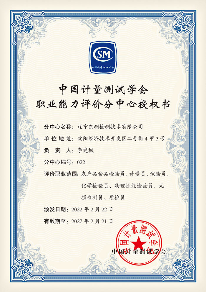 中國計量測試學會職業(yè)能力評價分中心授權書