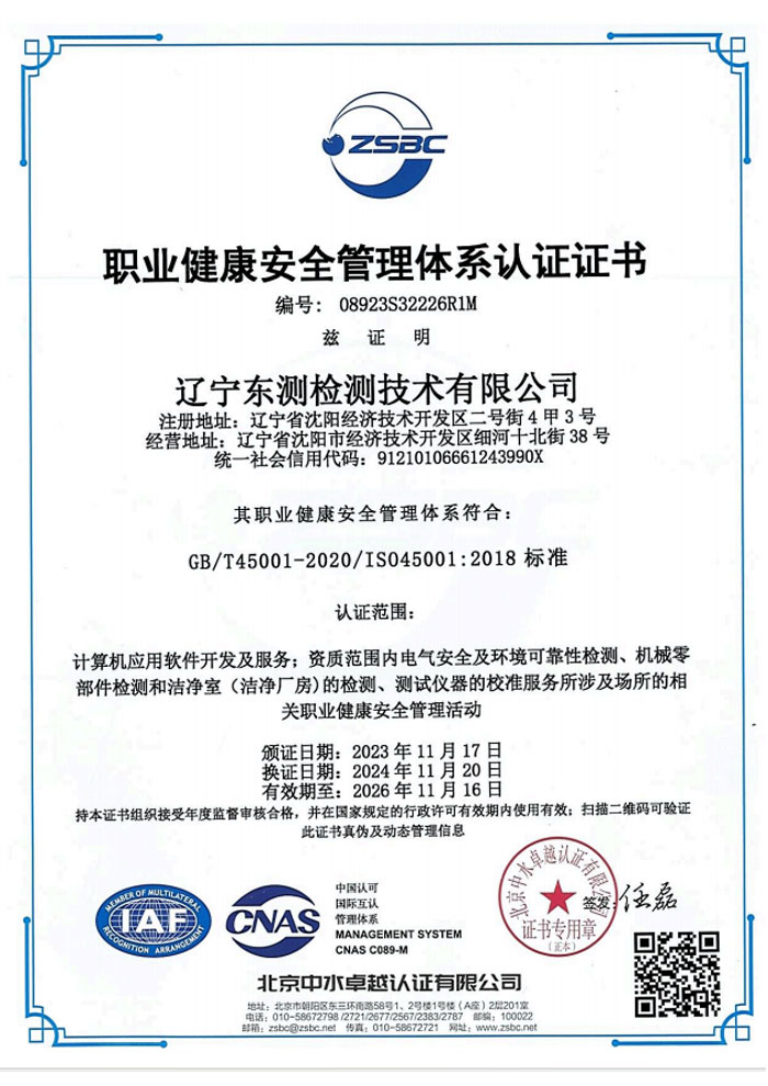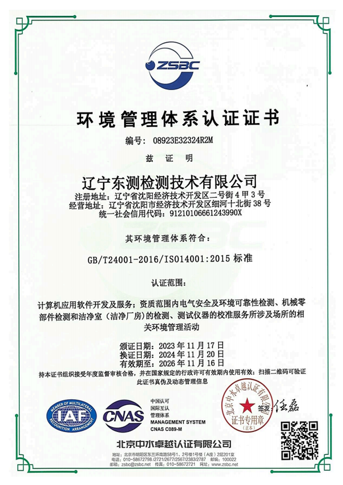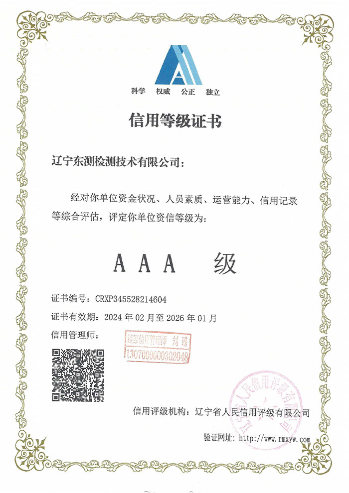 遼寧東測檢測技術有限公司成立于2007年6月21日,專注于為客戶提供計量、檢測以及技術咨詢與培訓的第三方計量檢測機構。遼寧東測檢測技術有限公司通過了中國合格評定國家認可委員會認可(CNAS),獲得檢驗檢測機構資質認定(CMA),憑借著高效的服務網絡、雄厚的技術實力以及全面的業(yè)務范圍,本著“科學、公正、準確、真誠”的質量方針,為社會提供優(yōu)質計量檢測服務,打造國內具有價值的計量技術機構。
